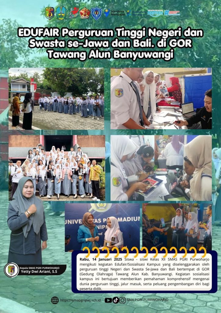Siswa-siswi Kelas XII SMA PGRI Purwoharjo mengikuti kegiatan EDUFAIR Perguruan Tinggi Negeri dan Swasta se-Jawa dan Bali yang diselenggarakan di GOR Tawang Alun, Kabupaten Banyuwangi.
