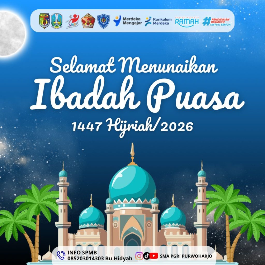 Segenap keluarga besar SMA PGRI Purwoharjo mengucapkan Selamat Menunaikan Ibadah Puasa 1447 Hijriah / 2026.